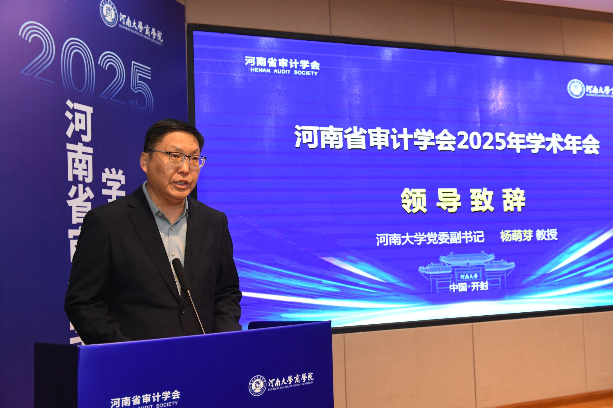杨萌芽致欢迎辞,他介绍了公司及beats365官方网站的发展历程与学术积淀,重点介绍了公司当前锚定研究型大学定位、践行办学新主线、迈入转型跨越新阶段的发展态势。他表示,本次年会既是审计领域的学术盛宴,也是beats365官方网站汲取前沿智慧、提升科研水平的宝贵契机,期待与会专家学者为公司发展提供指导,助力以高质量审计护航现代化河南建设。