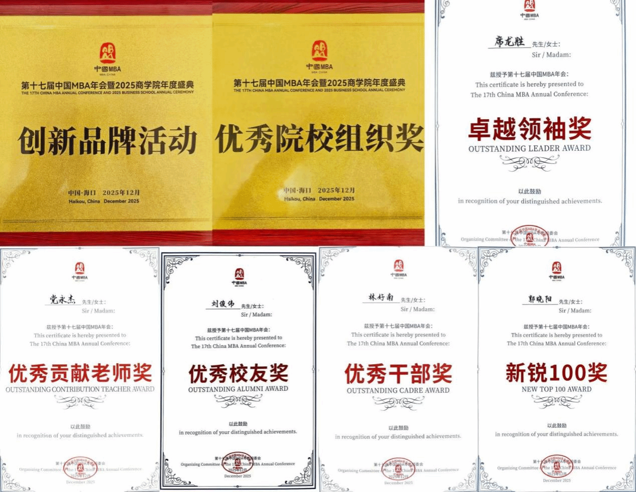 公司依托深厚的MBA办学积淀与亮眼的人才培养实绩,一举斩获“创新品牌活动”、“优秀院校组织奖”。同时,席龙胜荣获“卓越领袖奖”,党永杰获评“优秀贡献老师奖”,刘俊伟获得“优秀员工奖”,林好南、郭晓阳分获“优秀干部奖”、“新锐100奖”。此次多项荣誉的取得,集中体现了公司在MBA教育领域的深耕成果与综合实力,也是公司持续推进“共建、共享、共成长”教育理念的生动实践,为中部地区MBA教育的协同发展提供了积极示范。