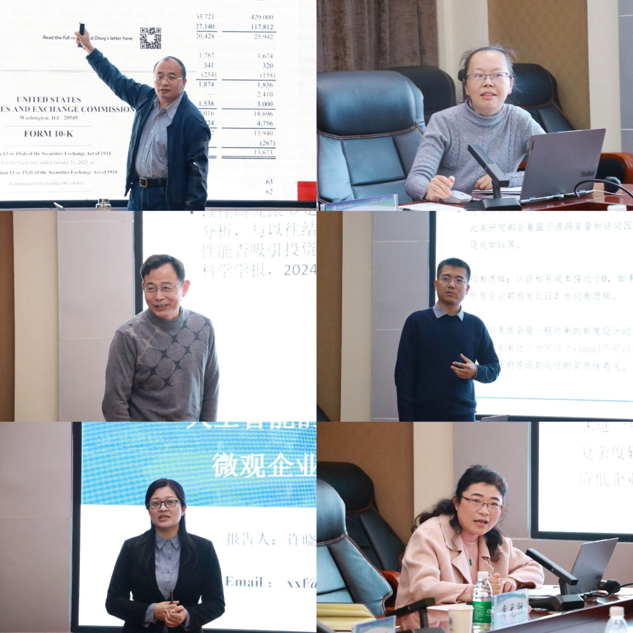 在随后的主题报告环节中,学术研讨深入展开。北京大学麻志明教授首先作了题为《Do Major Corporate Customers Affect Their Suppliers’ Government Contracting?》的学术报告,探讨了大客户对企业政府合约的影响机制。西安交通大学乔政教授以《Reading Between the Lines: Does Fund Manager’s Government Policy Emphasis Translate into Future Performance?》为题,分析了基金经理对政府政策的关注是否转化为未来业绩。北京工商大学许晓芳教授则从人工智能视角出发,报告了《人工智能的“风险治理”效应:来自微观企业诉讼风险的经验证据》,揭示人工智能在企业风险管控中的实际作用。每场报告后均设有专业点评与互动交流环节,现场师生踊跃提问,研讨氛围热烈。beats365官方网站王天雨、方键、任乐三位青年教师分别从研究设计稳健性、机制路径完整性、政策含义外推性等角度提出建设性意见。
