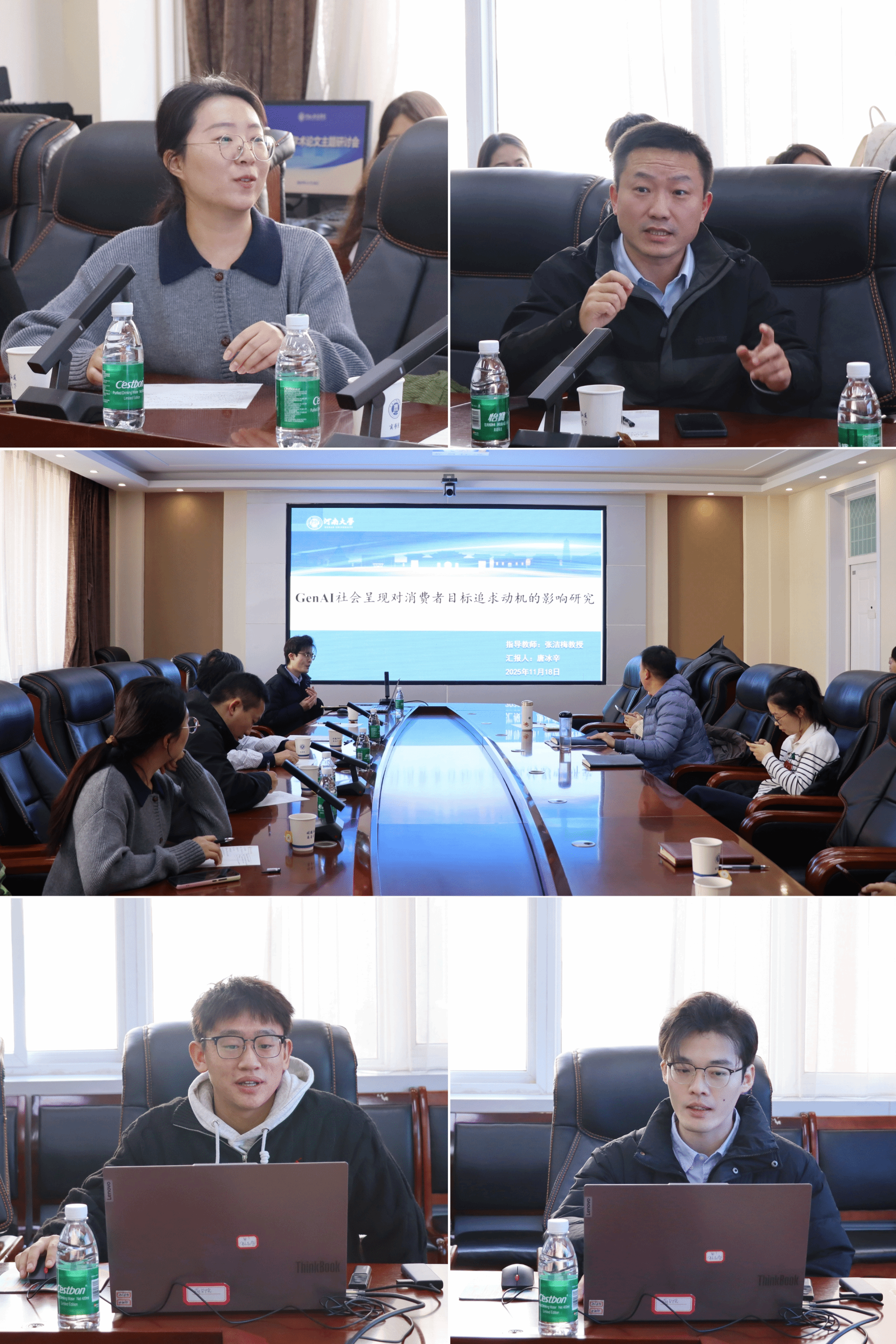 在第二阶段长达五小时的深入研讨中,张洁梅教授、李耀教授、许家旗博士、刘中刚教授及刘璐博士依次汇报了各自的最新研究进展。三位特邀专家围绕研究选题的前沿性、核心概念的界定、理论模型的构建、研究方法的严谨性等关键环节,与汇报人进行了充分交流,并提出了诸多建设性的意见与建议,现场学术氛围浓厚,讨论热烈。