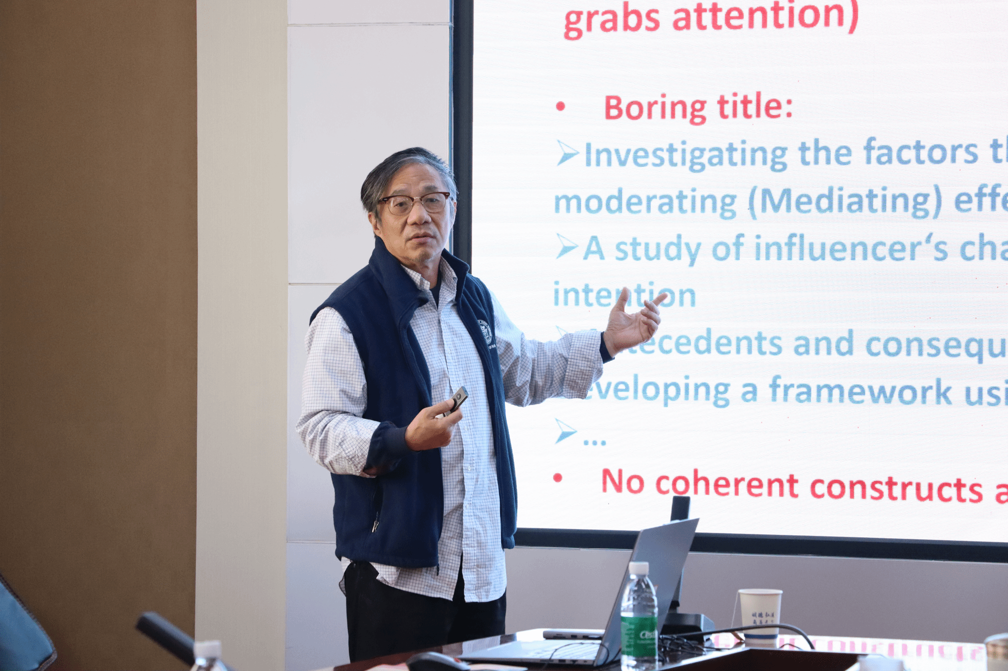 研讨会首阶段,王承璐教授以“通过讲故事展示贡献——从编辑的视角”为题作了精彩报告。他着重强调了理论贡献在学术研究中的核心地位,并从期刊主编的审稿经验出发,系统剖析了当前学者在理论构建与呈现中常见的误区。王承璐教授通过生动实例,详细讲解了如何精心拟定论文题目,以及如何通过构建新颖、独特且富有吸引力的“学术故事”,有效提升研究的理论高度与学术价值。报告内容深入浅出,直面青年学者在论文写作与发表中的痛点,为团队未来冲击高水平成果提供了极具操作性的指导。团队负责人张永军教授在随后的点评中,对王教授的分享给予了高度评价,并鼓励团队成员深刻领会、积极实践,将前沿的学术理念转化为扎实的研究行动。