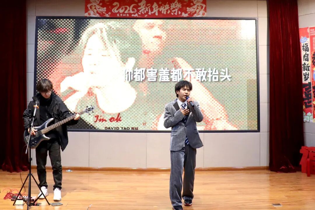 歌曲《第一天》《我们万岁》《金烛》《小镇姑娘》《如果有来生》轮番上演,施佳豪、王钰博等同学以真挚的情感、动听的嗓音,传递出对生活的热爱与对未来的憧憬,歌声时而激昂高亢,时而温柔婉转,深深打动着现场每一位观众。
