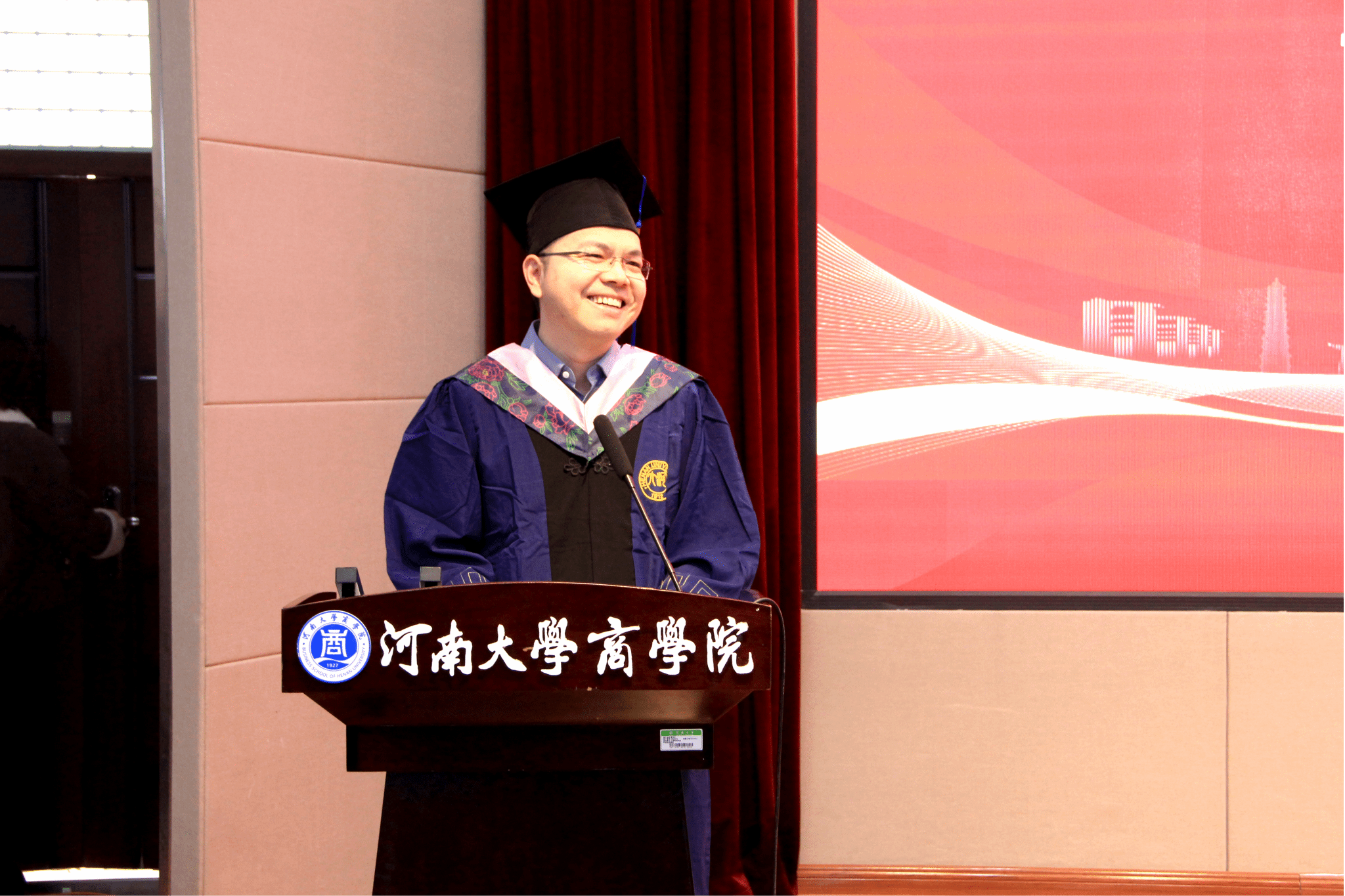 毕业生代表李东苗回顾了两年半兼顾工作与学业的历程,感念师长启发与同窗情谊,直言这段学习是高性价比投资,将秉持院训带着母校赋予的知识与责任勇毅前行。在校生代表林好南向毕业生致以祝贺,赞扬他们平衡多重身份的坚韧毅力,表态将以之为榜样,传承商院精神、勤奋求学。随后,经理席龙胜与毕业生代表互赠纪念品。毕业生送上“扬帆起航”定制摆件与孔子像,寄托对母校的祝福与感恩;经理席龙胜回赠定制纪念礼盒,见证师生同心的深厚情谊。