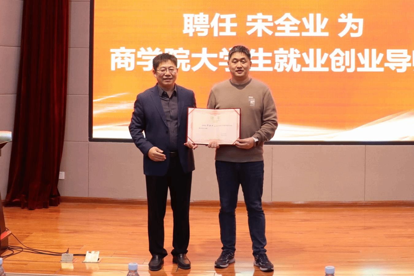 宋全业以“乘风破浪,勇创未来——企业数字化营销的新趋势”为主题进行分享。他从市场机会、创业心得及职场感悟三个方面具体讲述了如何把握数字化时代的新趋势。他以自己的职场经历和创业历程为例说明营销4P理论与聚焦战略的重要性,强调现阶段同学们应学好理论知识,为未来职场生活打好基础。