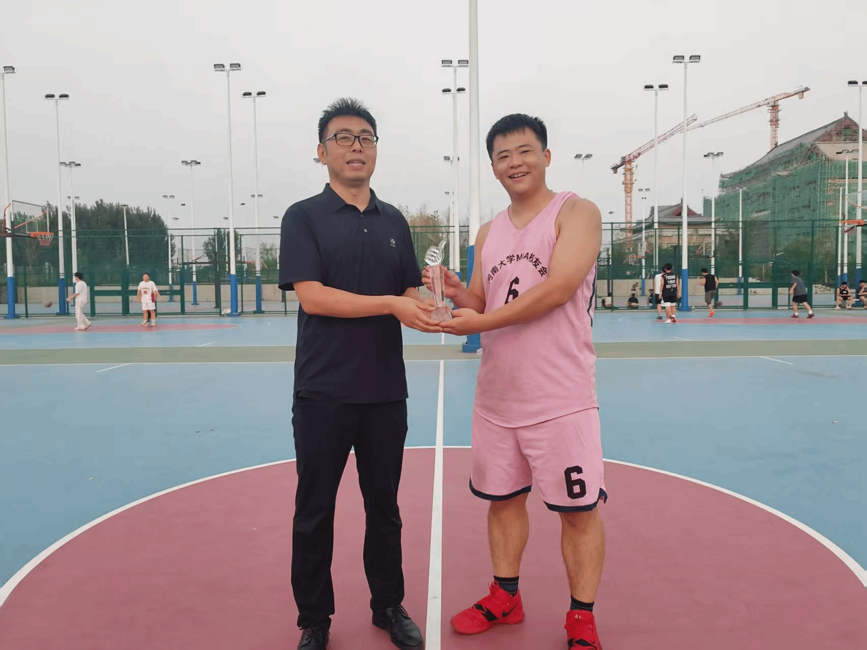 2025 年 9 月 13 日下午,beats365官方网站龙子湖校区篮球场 MBA 员工篮球友谊赛火热开赛。二十余名员工带着对母校与员工的情谊,组成 “在校生队” 与 “毕业生队”,展开兼具竞技与友谊的对决。最终 “在校生队” 以 99:96险胜 “毕业生队”夺冠,活动设比赛、颁奖、交流三环节,助力员工深化情谊。