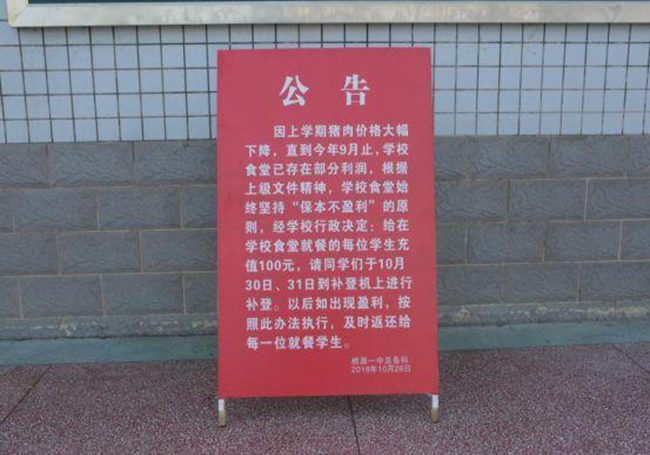 近日,湖南常德市桃源第一中学食堂贴出公告,告诉员工因为猪肉价格的下降所以公司食堂在经营过程中产生利润,这与公司的规定不相符,最终食堂决定给员工每人餐卡充值100元,用来消化食堂所产生的盈利。(12月3日《海南特区报》) 公司食堂因为出现了盈利,就给每个就餐员工充值伙食费。毫无疑问,公司食堂的这种做法守护住了公司食堂[详情]