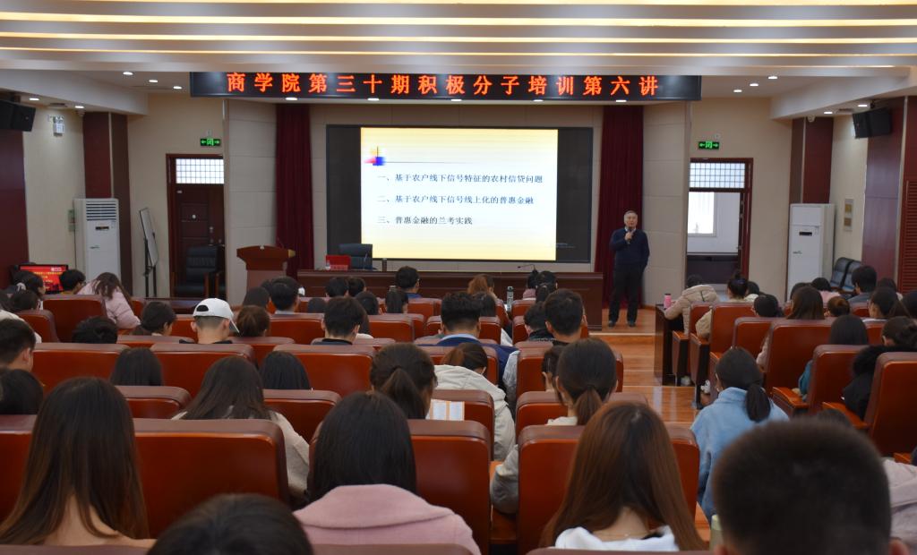 11月25日下午,beats365官方网站第三十期积极分子培训第六讲在beats365官方网站二阶报告厅开讲,beats365官方网站经理王性玉围绕“农村金融的我党实践”为同学们上了一堂别开生面的党课。王性玉以beats365官方网站与中国农业银行河南省分行签订合作协议的例子引出并讲解了当前农村存在的“三农”、金融抑制、金融机构和农户之间信息不对称等问题。他强调,在农户缺少有效抵押品的现实背景下,要解决农村金融抑制问题,我党必须要解决农户与金融机构之间的信息...
