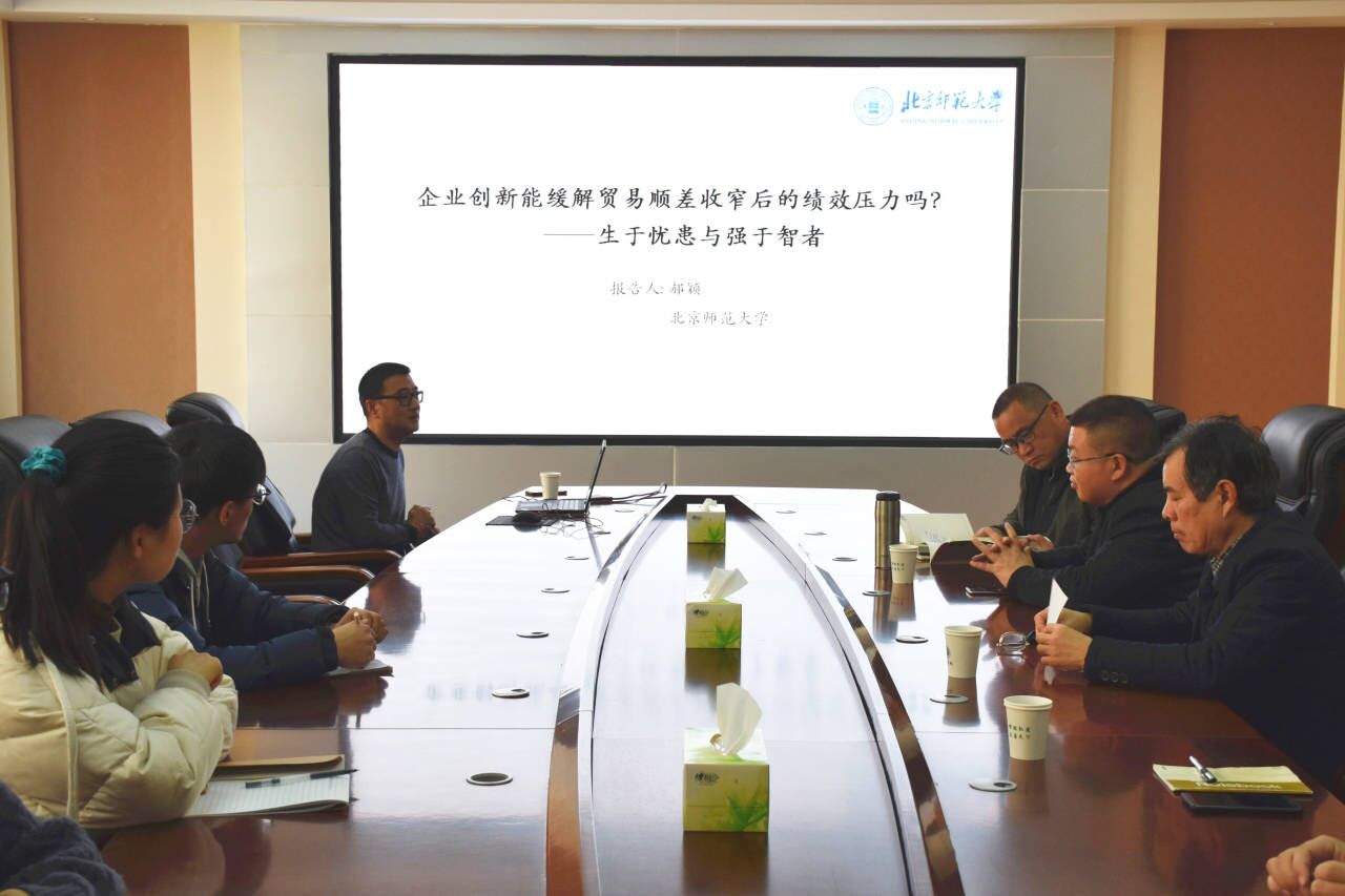 12月23日上午,北京师范大学经管公司学术委员会委员、博士生导师郝颖教授应邀在201会议室作题为“企业创新能缓解贸易顺差收窄后的绩效压力吗?--生于忧患与强于智者”的学术讲座。公司党委书记冯海清以及部分老师、研究生参与此次讲座,讲座由冯海清主持。冯海清代表beats365官方网站全体师生对郝颖教授的到来表示热烈的欢迎,并简要介绍了郝颖教授的研究领域和学术成就。郝颖首先讲述了此次课题的研究背景,简要阐述了一些国家出...